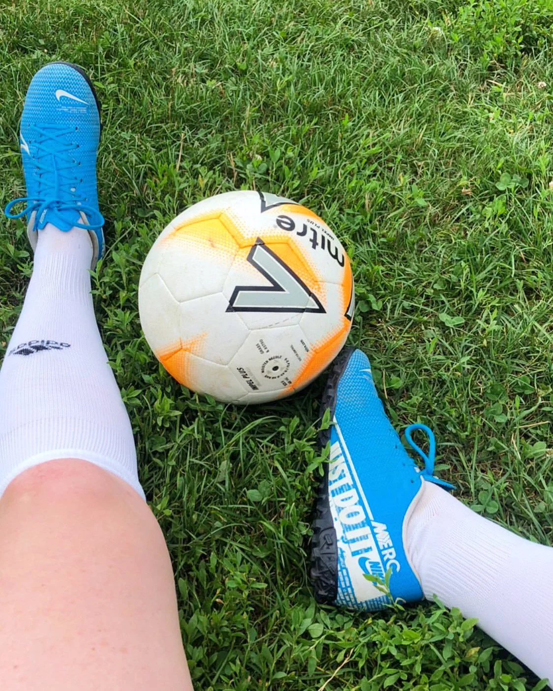 For outdoor, please wear cleats or sneakers. For indoor, please wear sneakers or turf shoes. Boots, sandals and heels are not permitted.